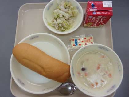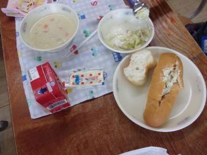 〇「チャウダー」がとろとろしていて,すこしあまくておいしかったです。「ハムサンドのぐ」にマヨネーズのあじがよくしみていて,おいしかったです。(1年生)