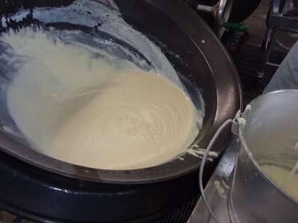 「チャウダー」のルーは,給食室で手作りでした。水加減を調節しながら,固さをみて,丁寧にルーを仕上げていきます!給食調理員さんの職人技が光りますね!