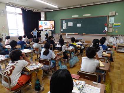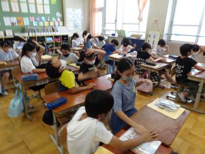 今日の外国語の学習では,教科の名前を英語で言う練習をたくさんしました。去年から5年生では,English Dayで教科名を英語で言っていたので,なじみのある単語がたくさんありました。