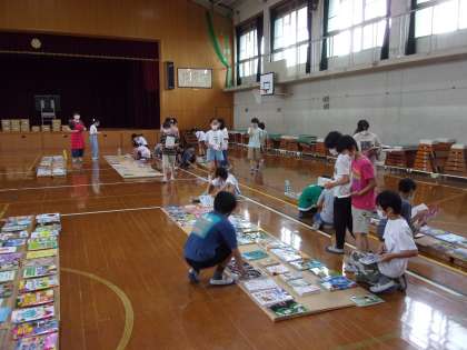 本日,体育館で選書会が行われました。書店さんからお借りした本が低中高学年ごとのブースに分けて並べてあり,子どもたちは自分が読みたいと思う本をそれぞれ2冊選びました。この活動を通して,もっと本に親しんだり,読書の楽しさに気づくきっかけになればと願っています。