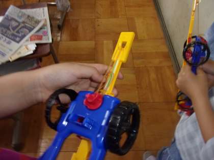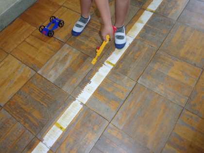 ゴム1本のときと2本のとき,どちらのほうが多く進むかな?という疑問から,予想を立てて,実際に走らせてみました。