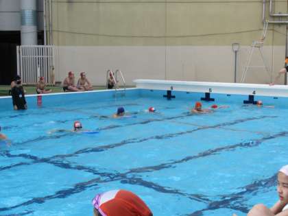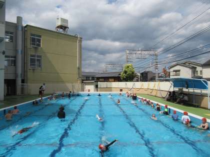 6年生は太陽が照ってきたころにプールに入りました。