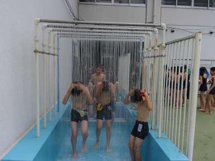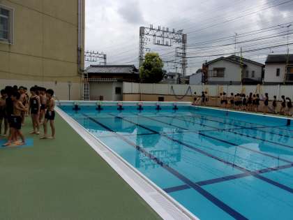 今年度,2回目の水泳学習。お天気にも恵まれ,準備体操のあとシャワーを浴びてプールサイドへ。今日は自分で選んだ,25メートル,50メートル,100メートルを目標にするコースに分かれ,少しでも長い距離を泳げるように練習しました。
