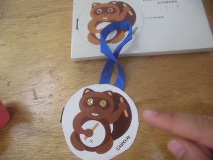 タヌキのお腹を指で叩くと,回路には乾電池もないのに両目が光ります。