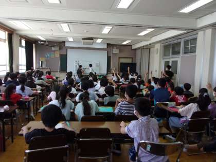 総合的な学習の時間「和の心」。本日は,第2回目。書家の先生をゲストティーチャーにお迎えし,文字の種類や筆の種類などなどたくさんの事を教えていただきました。次回は,子どもたちが好きな言葉などを毛筆で書き先生に指導していただきます。今から楽しみです!