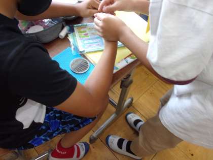 待ちに待った裁縫の学習。家庭科では「ひと針に心をこめて」の学習が始まっています。今は,玉結び・玉どめの練習を行っています。2学期には縫い方を学んだ後、手縫いで小物づくりをします。子どもたちは、今から楽しみにしているようです!
