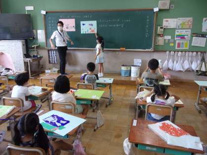 図工の「やぶいたかたちから」では、ちぎった紙を見て、何に見えるかなと楽しみながら絵にしました。