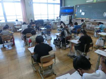 5年生は,国語科と算数科のジョイントプログラムテストに挑戦しました。終わった後,「4年生のころよりもできた気がする!」と言っている子どもたちもいました。結果が楽しみですね!