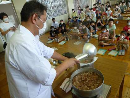 黄金色の出汁・・・子ども達は,五感をフルにつかってしっかり味わっていました。