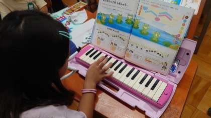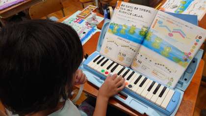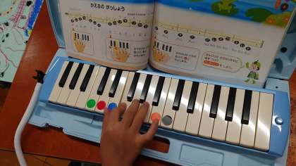 かえるのがっしょうの鍵盤ハーモニカのテストをしました。