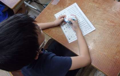 パソコンを配る前に、パソコンを使うために必要な秘密道具として、自分のIDとパスワード、アルファベットが書かれたシートを配りました。パソコンを使うときに、IDとパスワードが大切なことやパソコンを大切に扱うことを話しました。子どもたちも真剣に聞いていました。