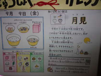 十五夜は九月十日(土)です!ご家庭でも、秋の恵みに感謝して月見を楽しんでみてください。