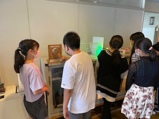 休み時間の様子です。科学センター内に展示してあるものに興味津々です。