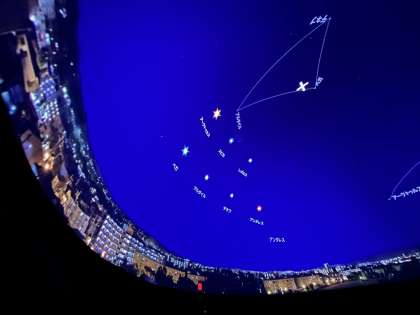 プラネタリウムの様子です。以前学習したことがとてもよくわかります。「星は温度によって色が違うんですよ。」と,所員の方が教えてくださいました。「えー!!」と驚きながら,鑑賞を楽しんでいました。