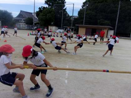 今日は、体育発表会に向けて、初めて棒引きの練習をしました。