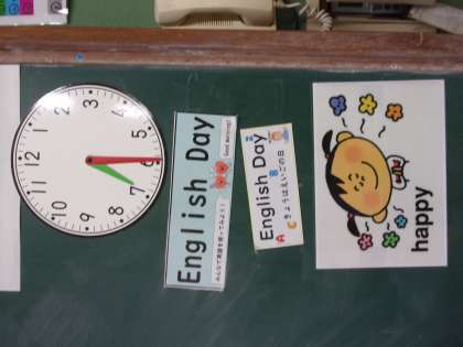 2学期から、英語活動が始まりました。今までも水曜日のEnglish Dayで英語でのあいさつやぐんぐんタイムでの英語の学習に取り組んできました。子どもたちは、水曜日になると、「今日はEnglish Dayだよ。」と言ったり、黒板にEnglish Dayのカードを貼ったりしています。