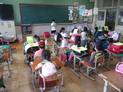 帰りの会でも英語に挑戦中です。これからの英語活動でも、ゲームや歌など英語に親しんでいきます。