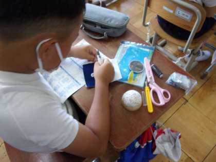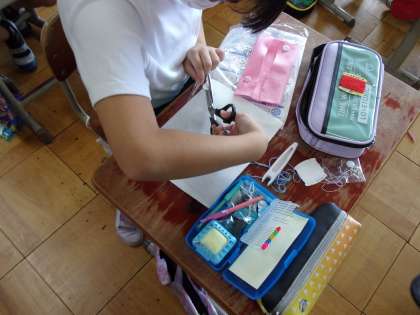 先日の自由参観で観ていただいた、家庭科の小物づくりが終盤を迎えています。子どもたちは、それぞれが工夫した作品づくりを楽しんでくれています。
