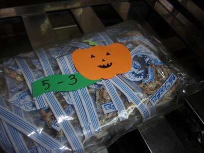 「じゃこ」が入ったクラスの袋には、ハロウィンの飾りがついていました!