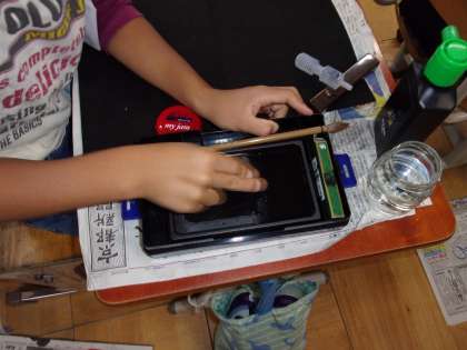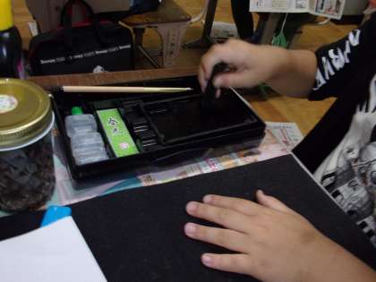 5分間、無心になって墨をすります。上手にすらないと薄くなってしまうので、まだまだコツをつかむまでには時間がかかりそうです。