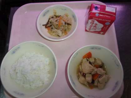 今日の給食の「高野どうふと野菜のたき合わせ」は、温かく、気持ちがほっこりするような給食でした。高野どうふは、さとう・しょうゆ・だし汁で味がしみこむようにコトコト煮こみました。おいしい味も、野菜や鶏肉のうまみもたくさん吸い込んでくれていました!