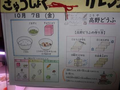〇「こうやどうふがあたたかくて、おいしかったです。さむかったので、とってもぴったりでした。ごまずにのごまが、いいかおりでとてもおいしかったです。」(1年)