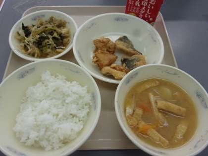 今日は、「とびうお」が登場しました!しょうが・料理酒・しょうゆにつけこみ、米粉・片栗粉をまぶして、カリッとしあげました。おかわりする児童も多く、いつもはあまりおかわりしない児童も「ふやしてほしいな」と言ってくれました♪