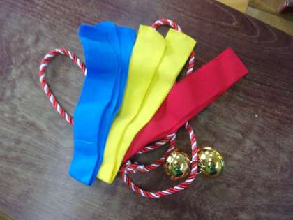 1年生のおみこしリレーで使うおみこしには、自分たちの似顔絵を貼りました。みんなの気持ちを全部のせてつないでいきます。はちまきや鈴もつけて走ります。あと少し、練習を頑張ります。