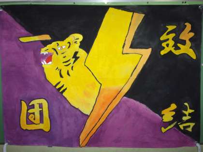 2組の団旗も完成です!テーマは「一致団結」です。黄色い虎が迫力満点です。