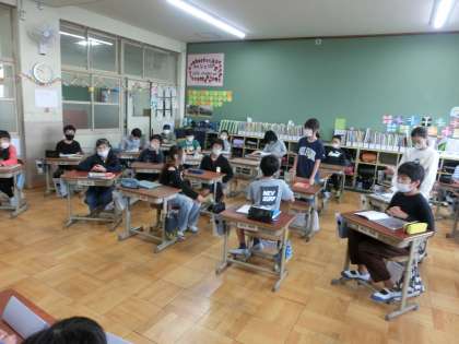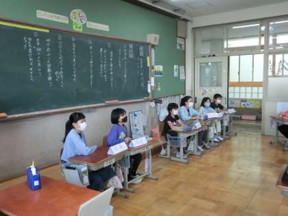 国語科では,よりよい話し合い活動をするための学習をしています。「他学年に挨拶ができていない。」という問題の解決策をグループで話し合い,それをもとに学級全体で話し合いました。自分たちがまず,行動しないと変わらないという意見にまとまり,これから学級内で「あいさつの日」を決め,進んであいさつしていこうという運動を始めていきます!どんどん明るい学級,学校になっていくといいですね。