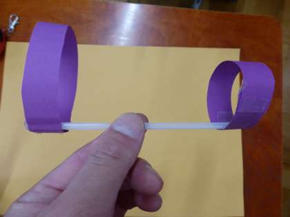 ストローだけを投げても飛ばないのですが,先と最後に輪っかをつけるときれいに飛んだのです。