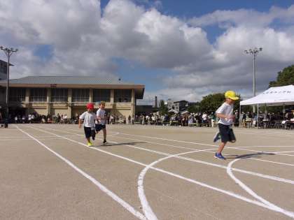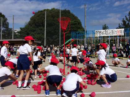 初めての体育発表会、とってもがんばりました。一生懸命に走って、投げて、かついで。どの競技でも子どもたちの目がキラキラと輝いていました。