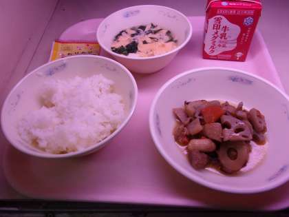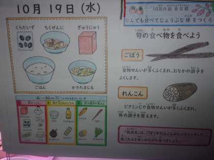 今日は、秋に美味しい根菜を使った「筑前煮」が登場しました!給食調理員さんが、じっくりとれんこん・ごぼう・にんじんに味をしみこませてくれました!いい香りが調理中から漂っており、給食が待ち遠しくなりました♪