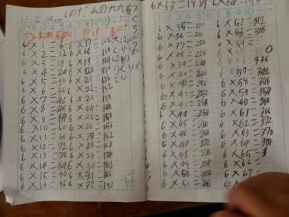 6の段が楽しかったのか,学習後もこの決まりが当てはまるのか,モクモクと計算を続けて確かめる子どももいました。