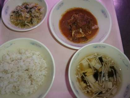 今日は11月の和献立でした。秋においしい「鯖󠄀」や「えのきだけ」が登場しました。「さばのみそ煮」は、白ねぎとしょうがも使っており、ご飯がよく進む献立でした。いつもは魚を減らすことが多い児童も、「やっぱり1つ全部食べる!」としっかり食べてくれていました。