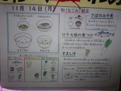 ○「さばのみそに」がおいしかったです。つぎのきゅうしょく、たのしみにまっています。(1年生)