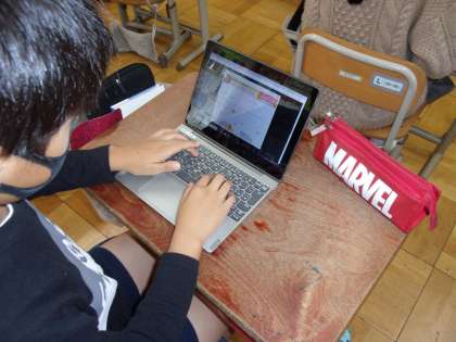 ICT支援員の先生に、タイピングについて教えていただきました。普段子どもたちは、とても上手にタブレットに文字を入力しているのですが、よく見てみるとタイピング方法はバラバラ。入力のスピードと正確性を上げるためにホームポジションを覚えるのがおススメということで、挑戦してみました。なかなか最初は上手くいきませんでしたが、継続して練習していきたいと思います。
