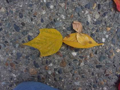 図鑑を見ながら、「これがほしいんだけどな。どこかにないかな。」「この葉っぱはこの写真と一緒かもしれない。」と楽しんだり。「花火ができた。」「ペンギンになったよ。」「魚ができた。」とどんどん葉っぱで絵を作ったり。「髪につけるとかわいいよ。」といろいろな遊びで秋を楽しんでいます。