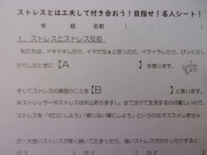 5年生は各クラスごとに、スクールカウンセラーの白原先生と、ストレスとの向き合い方について学習しました。