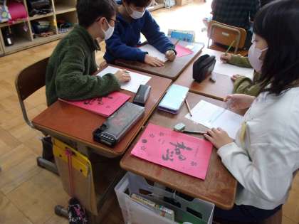 そこで、学んだことを4年生に紹介するためのまとめの学習が各クラスで始まりました。発表は3学期の始めに5−1と4−1、5−2と4−2、5−3と4−3で交流します。