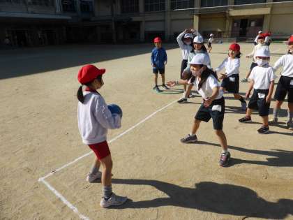 声を出して伝えるなど,いろんな工夫をしてパスをつないでいます。