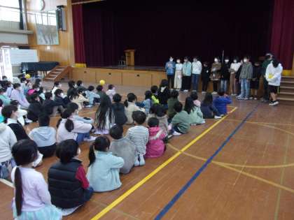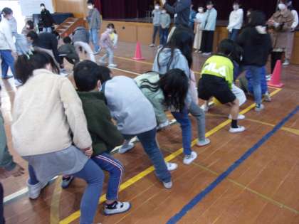 5・6年生の運動委員会さんが全校のみんなが楽しく運動に取り組めるように、パスゲーム大会を計画してくれました。1年生は、4年生とペアになり、ボールをパスでつないでいきます。