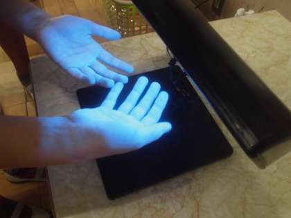 手洗いの後、ブラックライトでよく見てみると、白く光るところがあります。