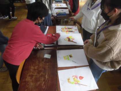 たくさんの果物やお菓子の中から自分が好きなものを選んでオリジナルパフェを作り、“I like strawberries.””I like melons.”と紹介し合いました。どのパフェもいろいろな工夫されていて、とてもおいしそうでした。