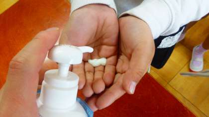 何回も何回も汚れが取れるまで手を洗います。
