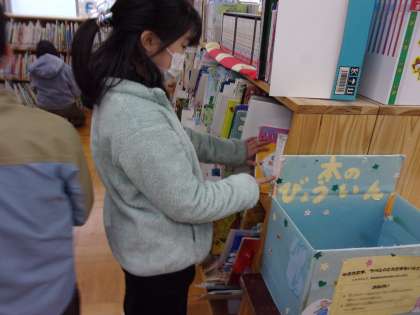 本を自分で選び、内容を相手の年齢に合わせて紹介文を書きます。