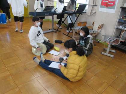学年全体をグループごとに分けて発表することとはまた別で、合奏の練習をしています。