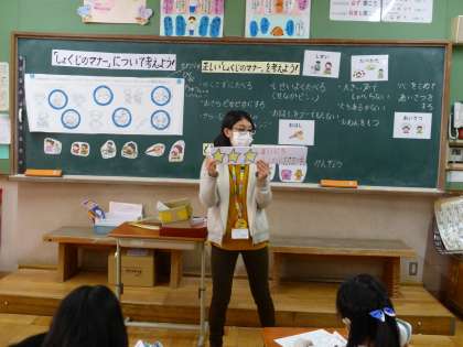 栄養教諭の片山先生に来ていただき、食の学習を行いました。