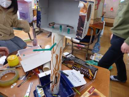 用意した材料をうまく組み合わせて楽しいハウスを作っています。