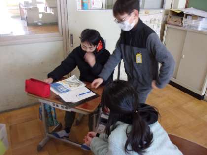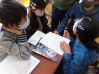算数科では「速さ」の学習を行っています。時速・分速・秒速に加えて、メートル・キロメートルなどの単位変換に子どもたちは苦戦しています。そんな時は、集団で解決する前に班で話し合いをして、意見交流をしたりします。質問したりされたりしながら、身近な友だちの考えに触れて、思考を深めることができていました。